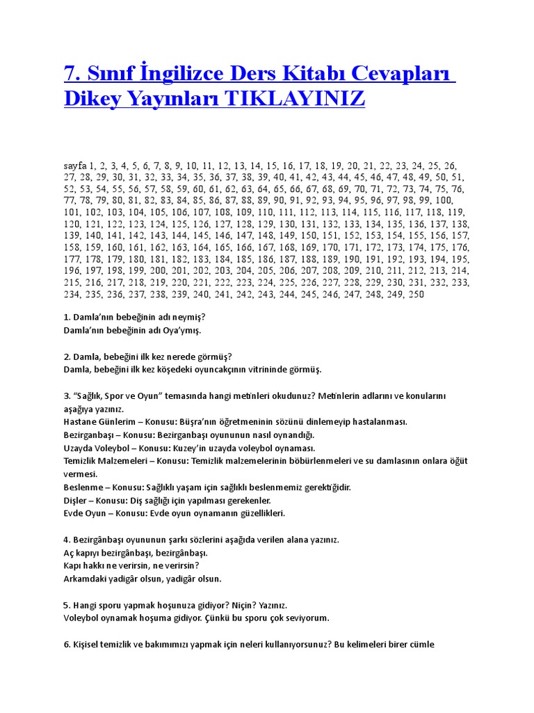 2018 2019 7 Sinif Ingilizce Ders Kitabi Cevaplari Dikey Yayinlari