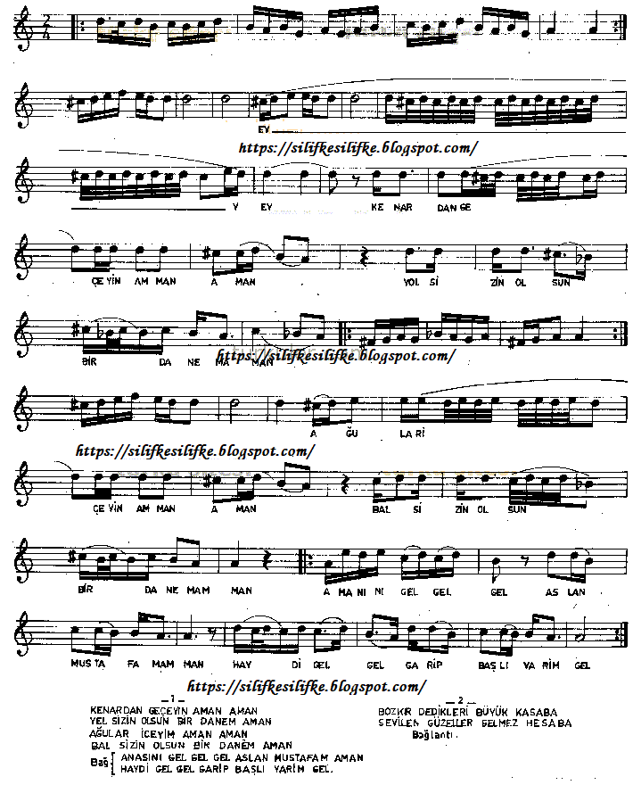Kenardan Geceyim Yol Sizin Olsun Aslan Mustafam Turku Notasi