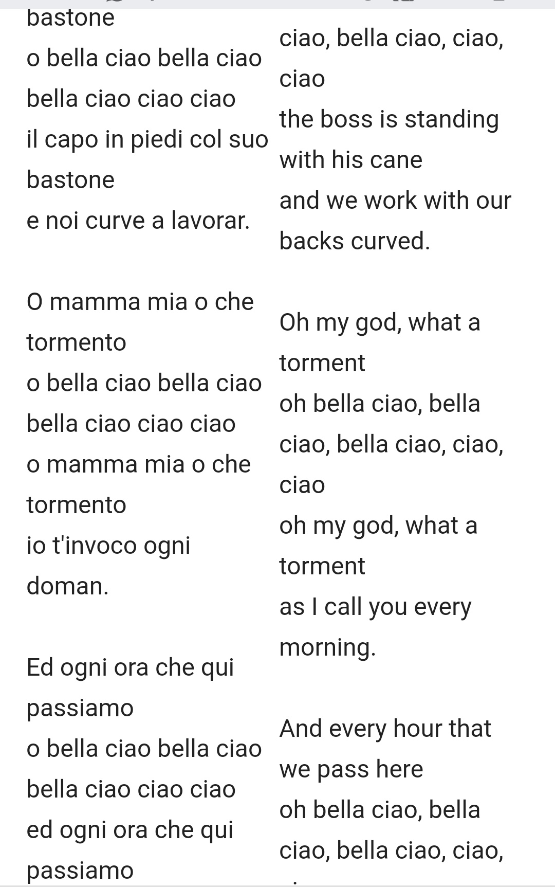 Emily M On Twitter Just Stumbled Across This Translation For Bella Ciao Whole Different Vibe