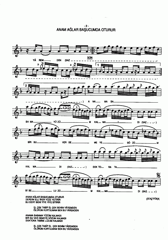 Anam Aglar Basucumda Oturur Notalar Sozleri