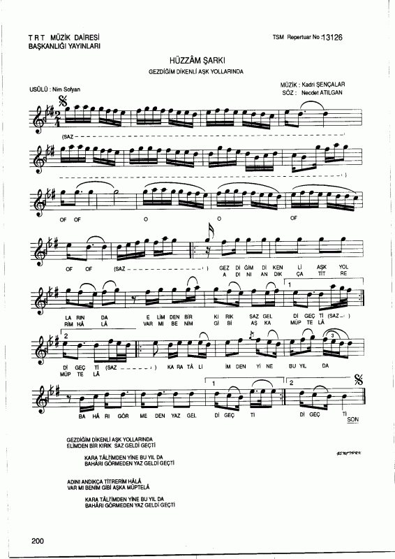 Gezdigim Dikenli Ask Yollarinda Notalar Sozleri