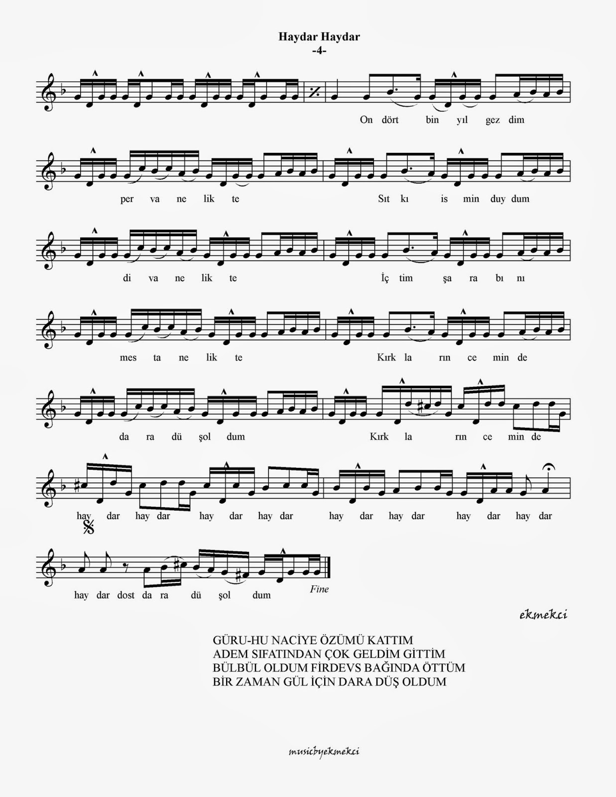 Haydar Haydar 1 Turkusunun Notalari Turku Turkuler Turku Dinle Turku Sozleri Turku Notalari