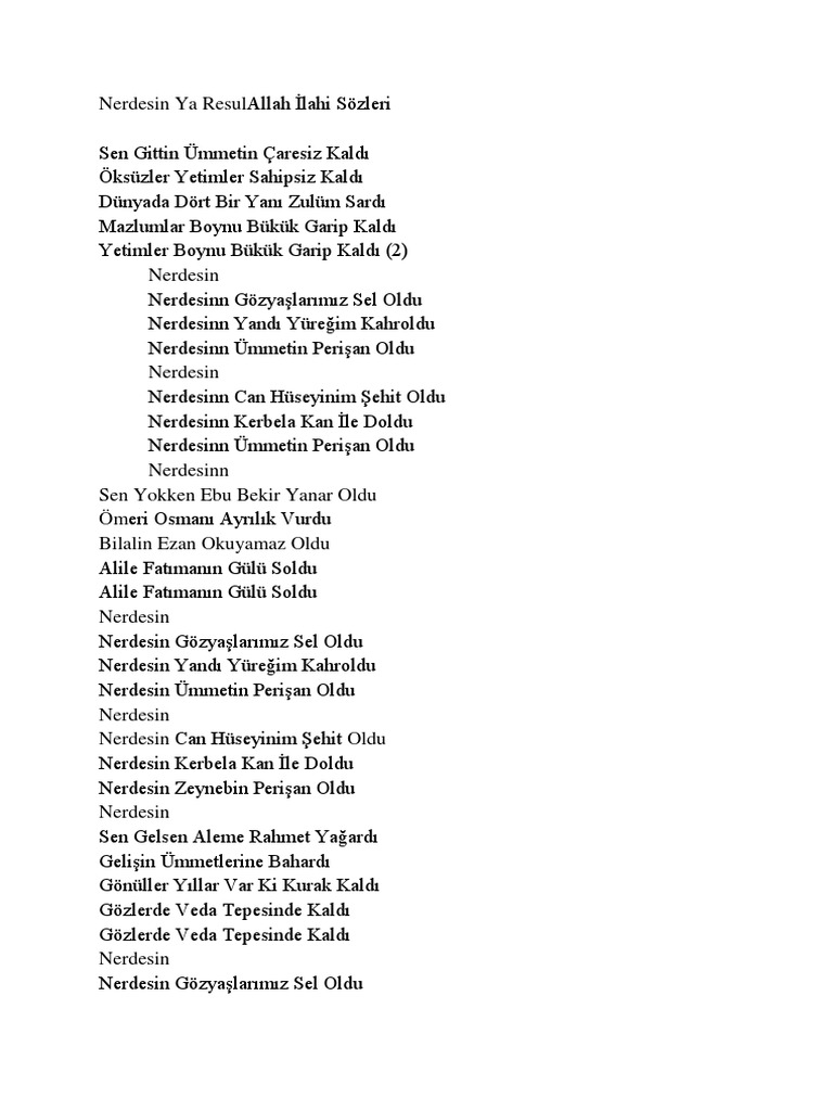 Nerdesin Yarasullallah Ilahi Sozleri