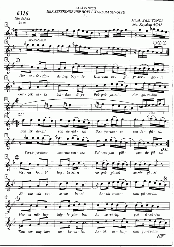 Her Seferinde Hep Boyle Kostum Sevgiye Sevgiyle Notalar Sozleri